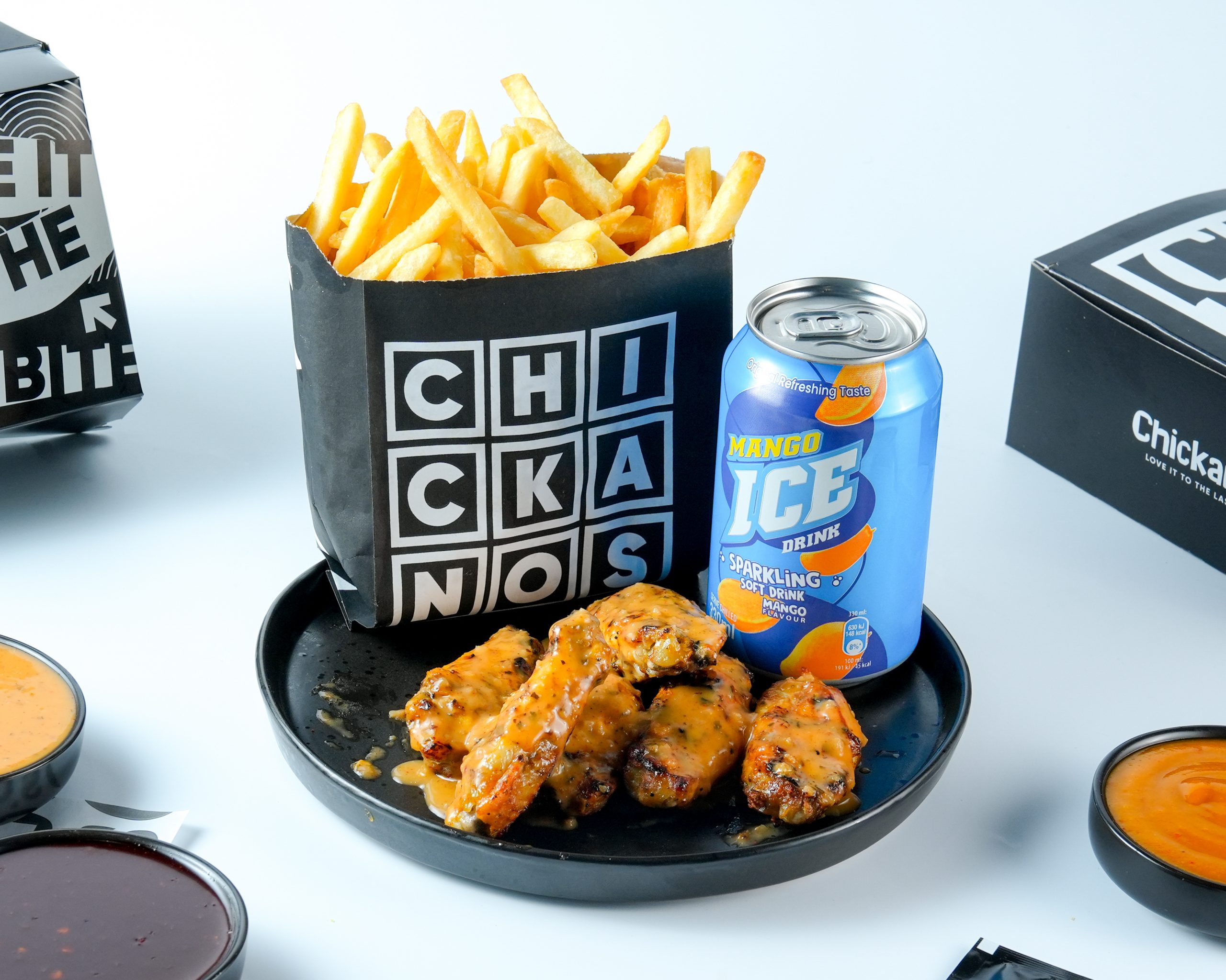 2 Piece Chicken, 3 Wings served with Fries and a Drink.