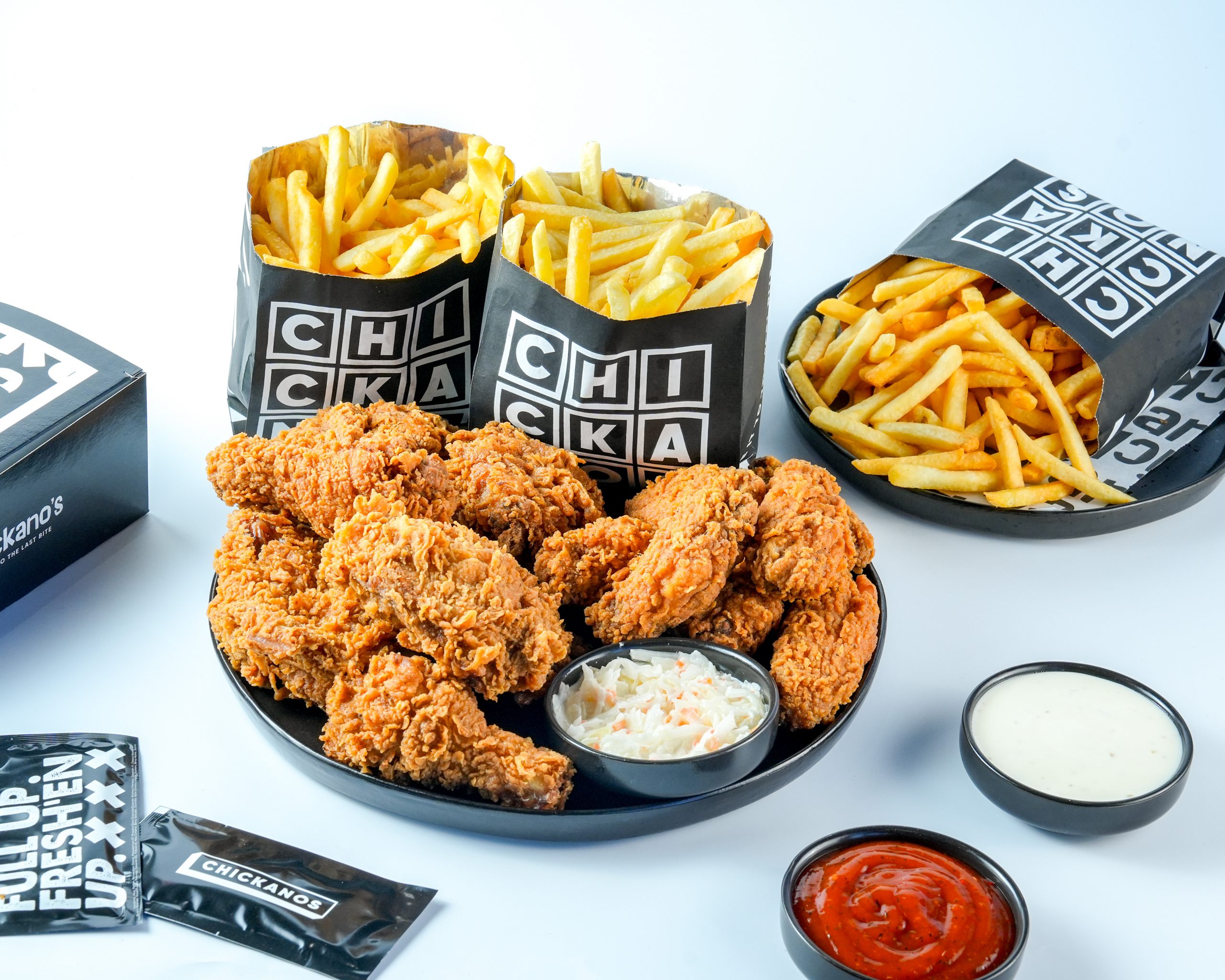 6 Piece Chicken, 6 Wings, 3 Fries & 2 Tubs of Coleslaw.