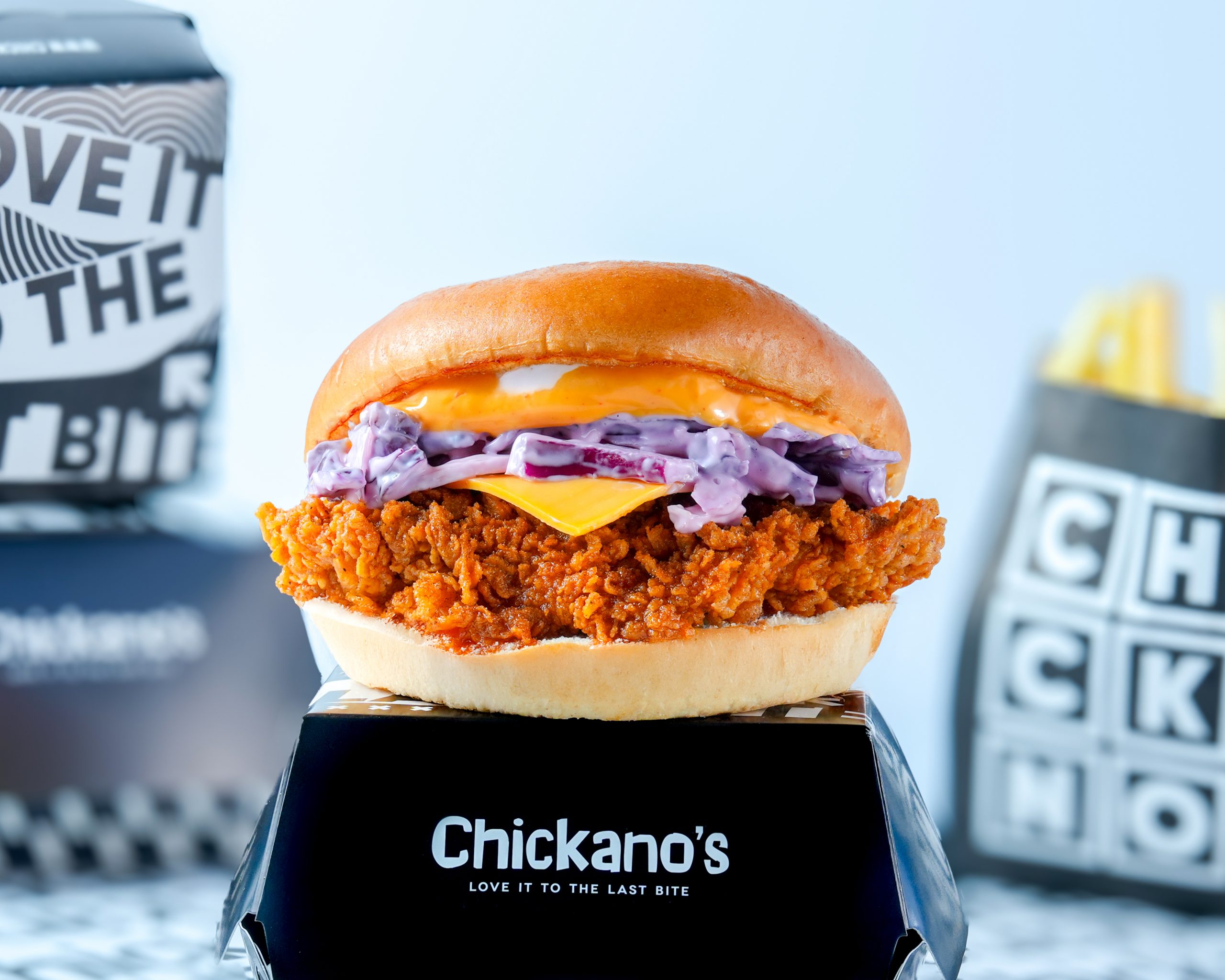 Nashville Hot Fried Chicken, Cheese, Crunchy Slaw, Dynamite Sauce, Glazed Potato Bun