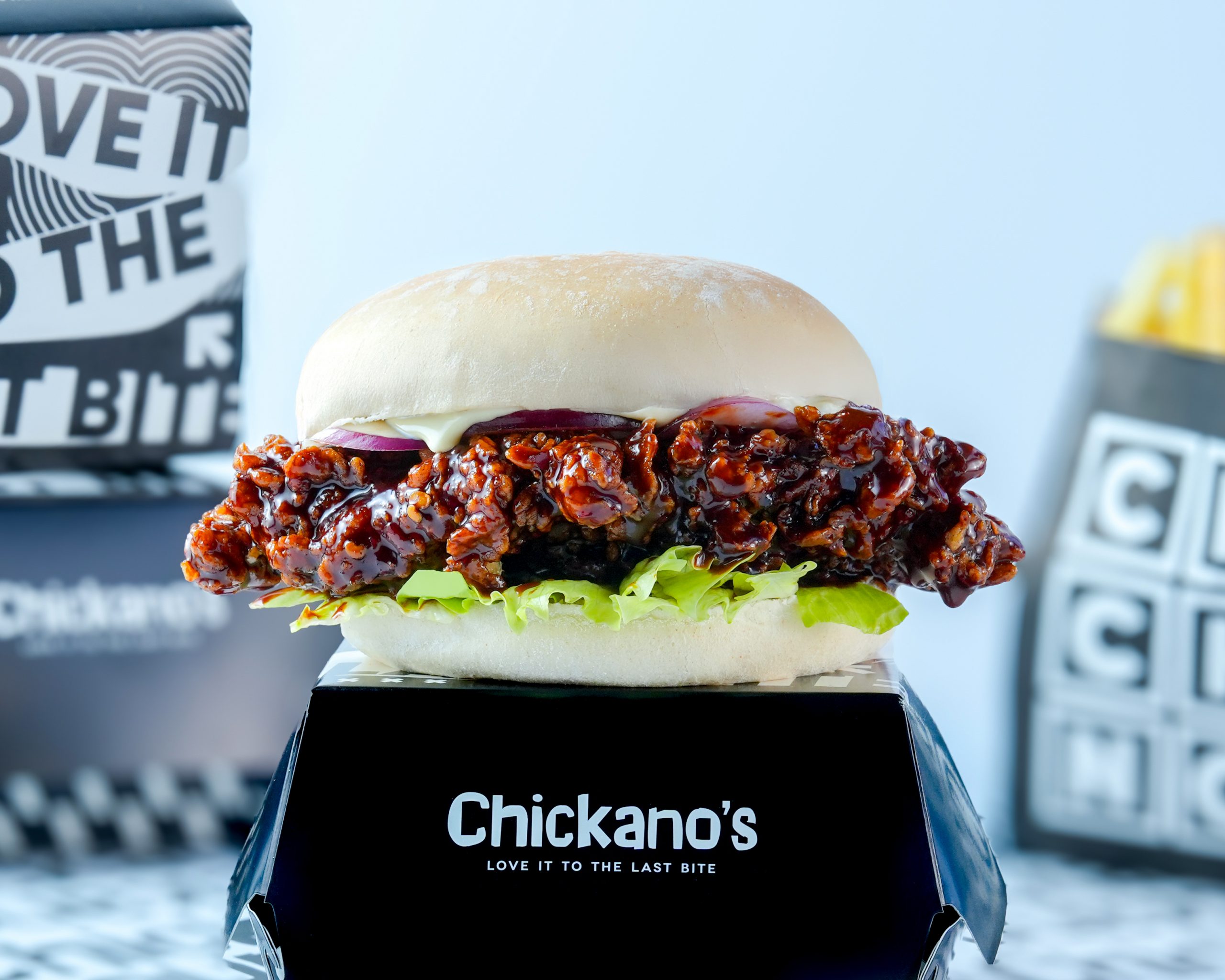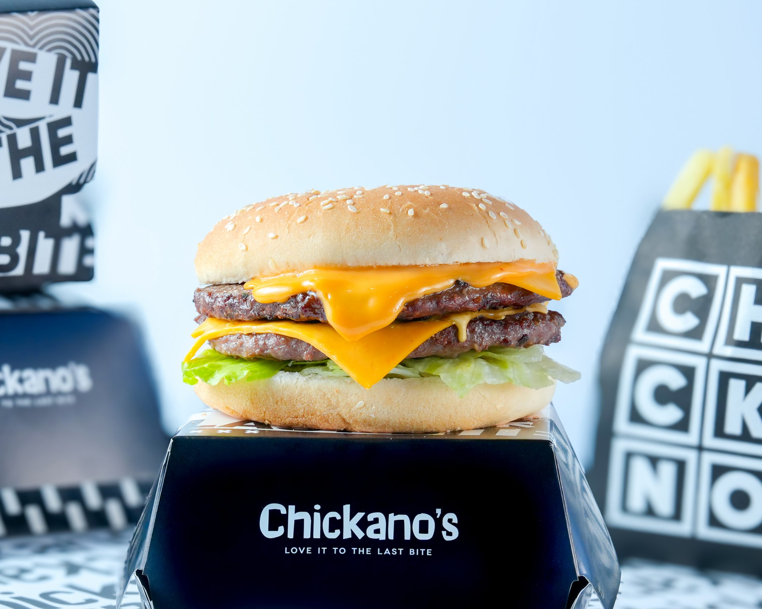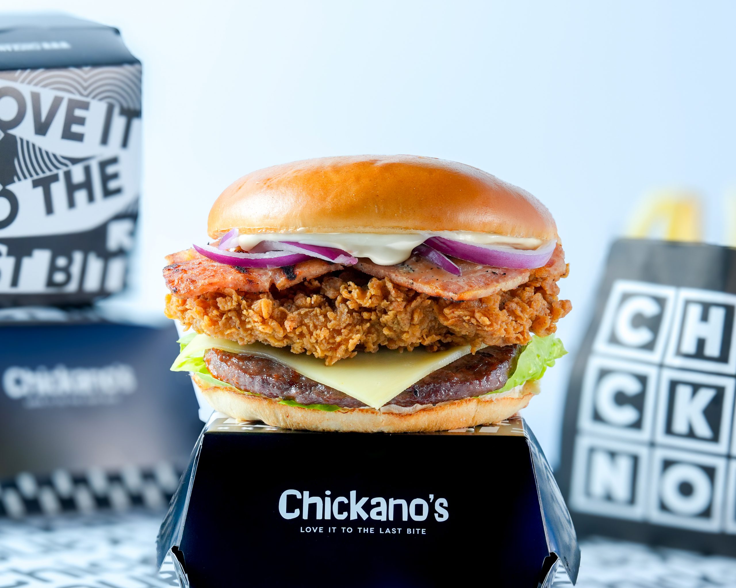 Brioche Bun, Cheese, 100% British Beef, Chicken Fillet, Chicken Rashers, Inferno Chilli, Mayo, Onions & Fresh Lettuce.