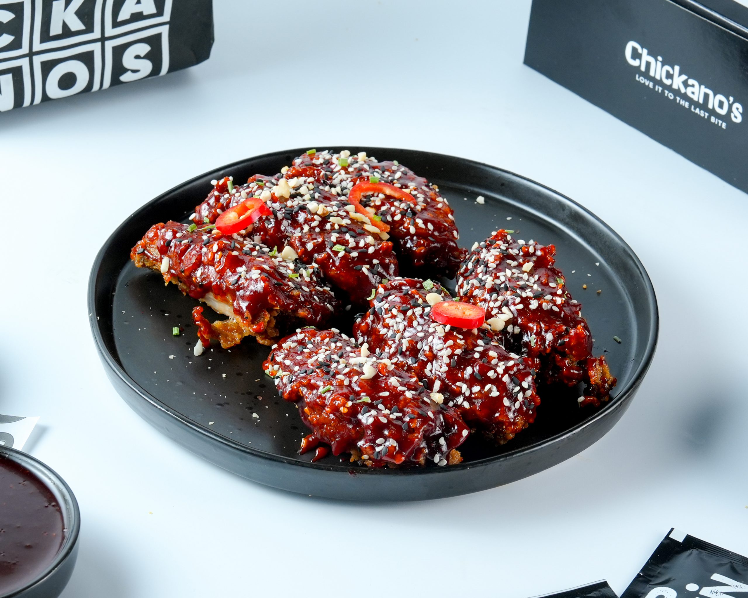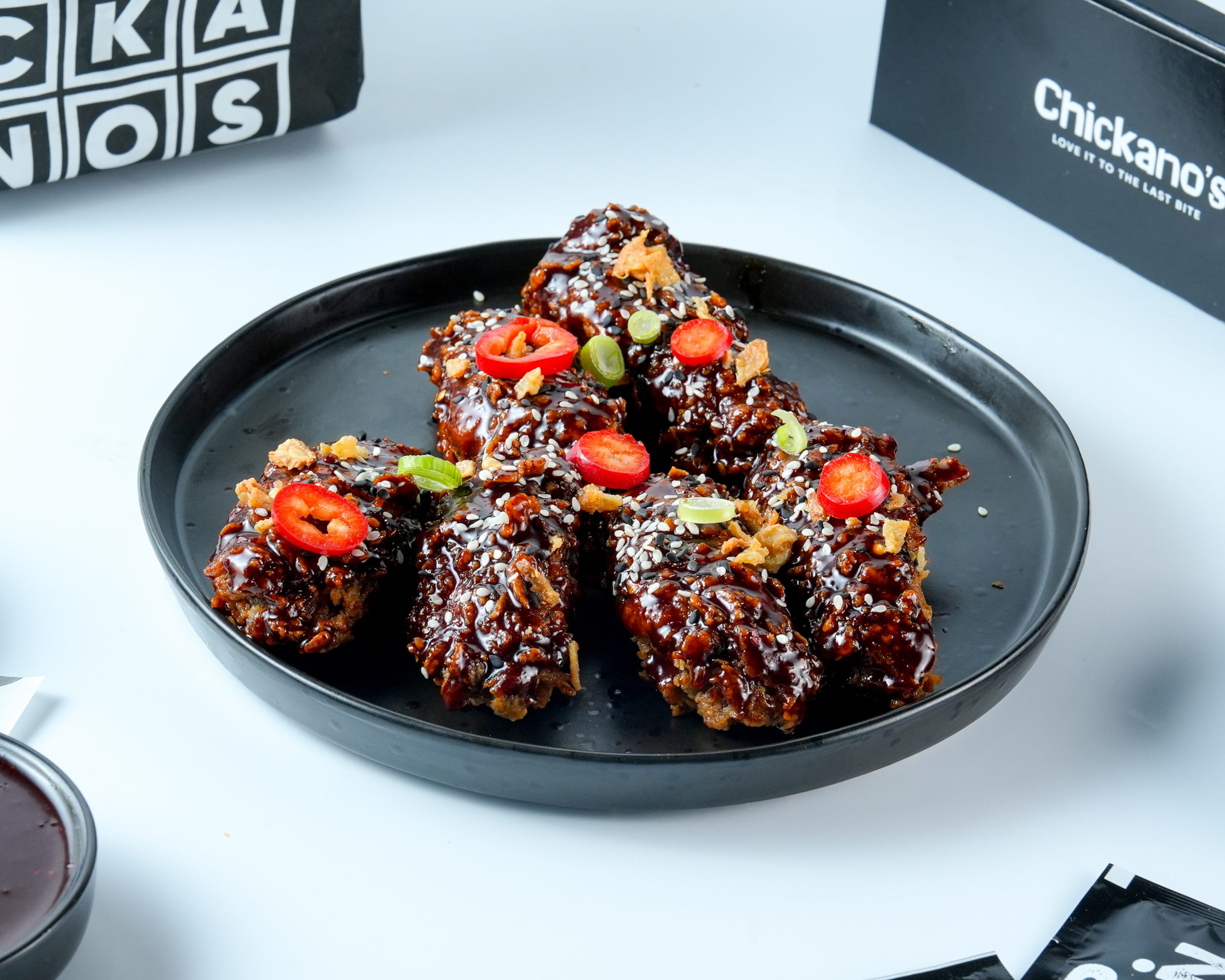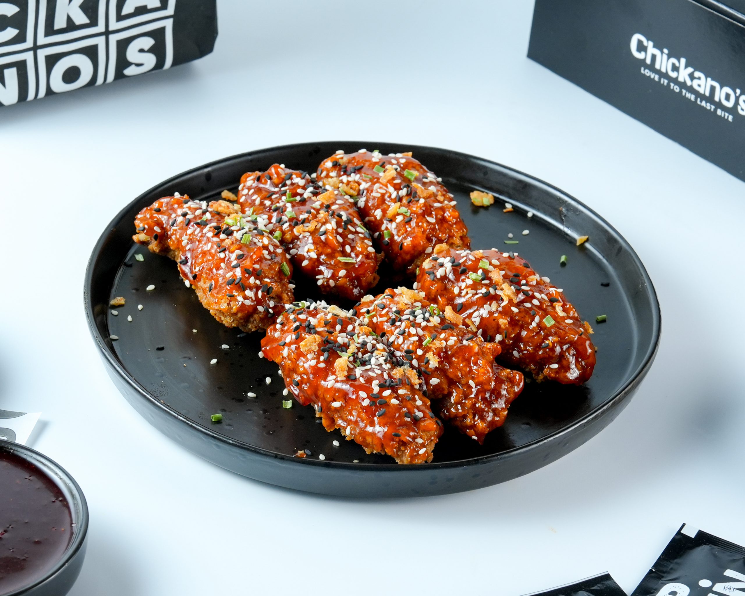 Our Famous Fried Wings Coated In a Sweet n Sour Korean Sauce, Sesame Seeds, Chives, Chopped Nuts & Red Chilli