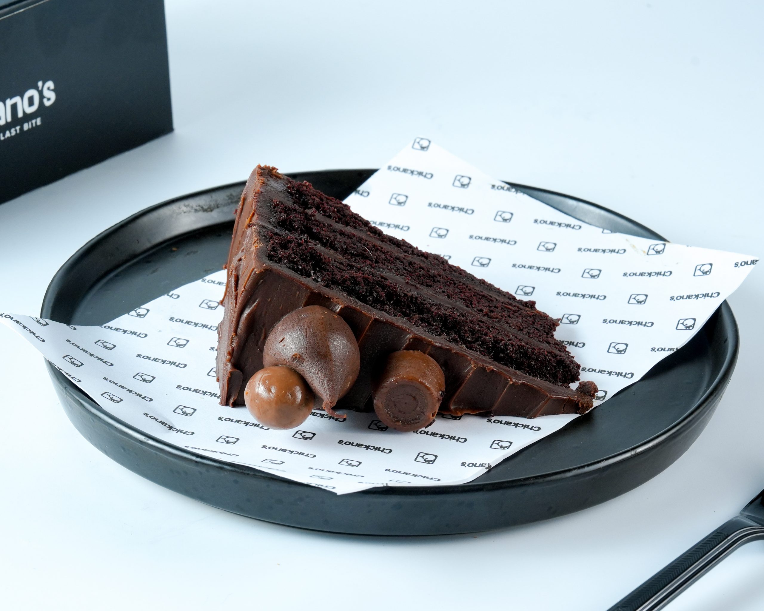 Moist chocolate sponge layered with rich Belgian chocolate fudge cream